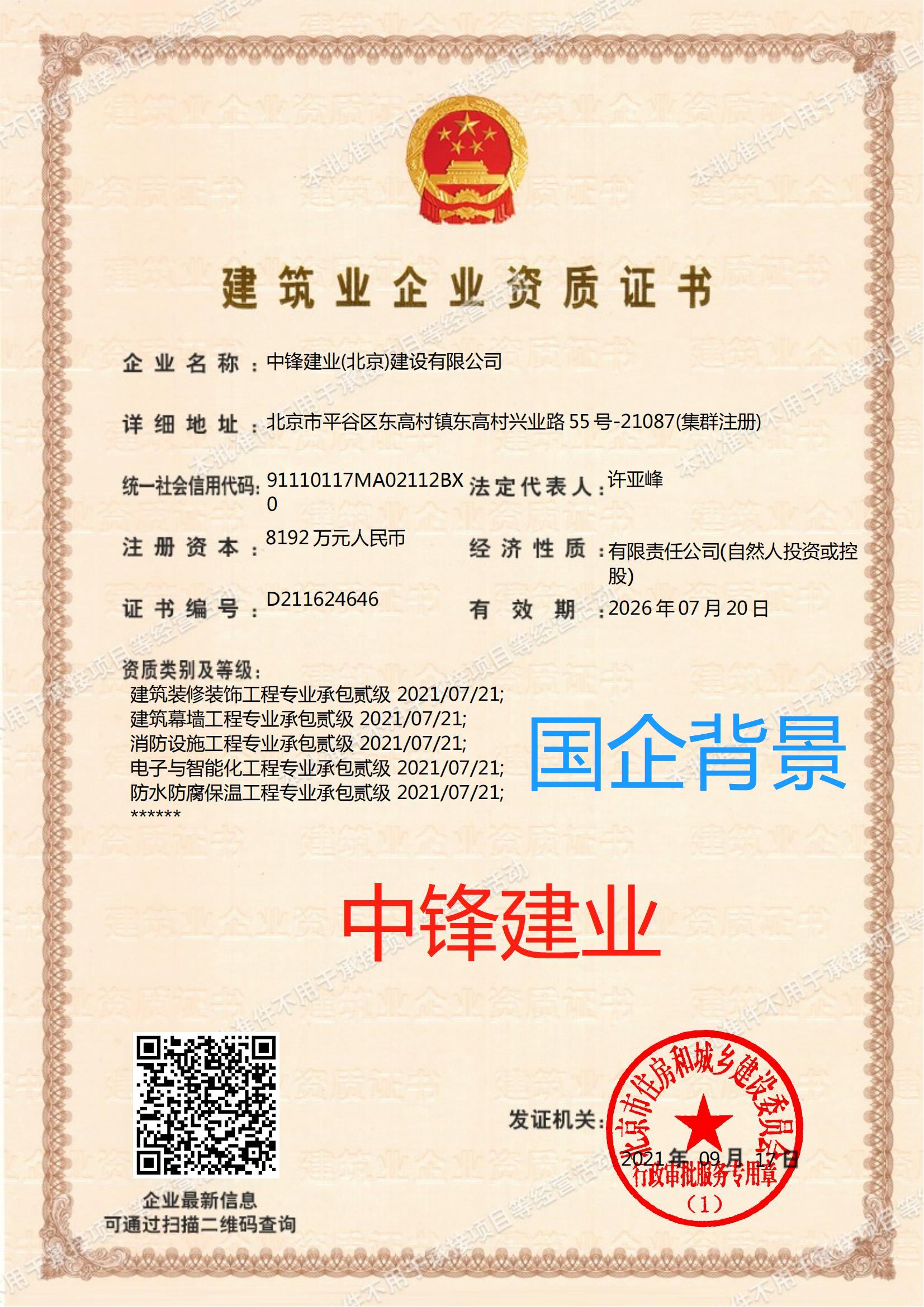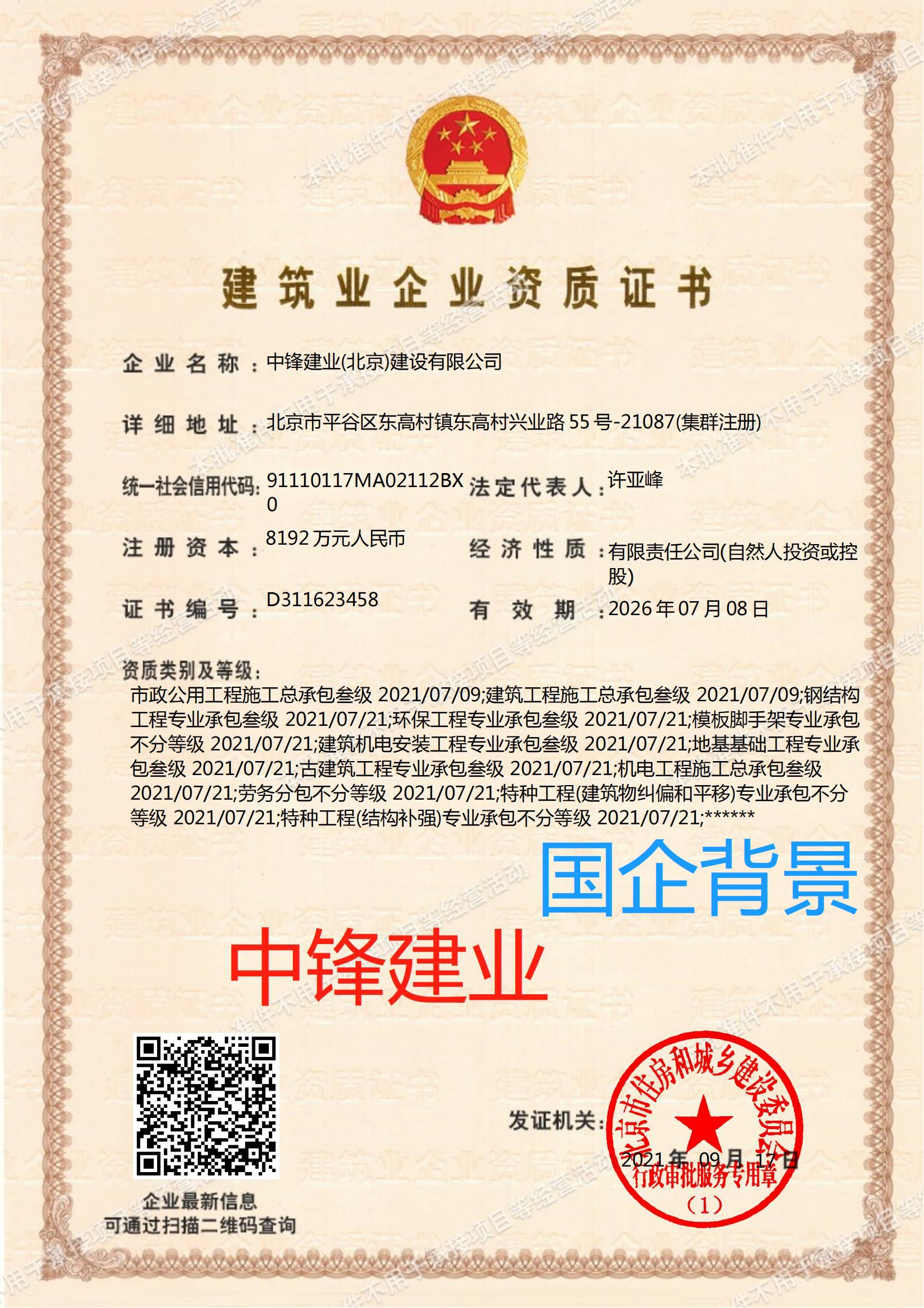 中鋒建業(yè)(北京)建設(shè)有限公司歡迎您工程資質(zhì)加盟分公司 中鋒建業(yè)(北京)建設(shè)有限公司備案信息 企查查中鋒建業(yè)(北京)建設(shè)有限公司信息查詢 住建部中鋒建業(yè)(北京)建設(shè)有限公司資質(zhì)查詢