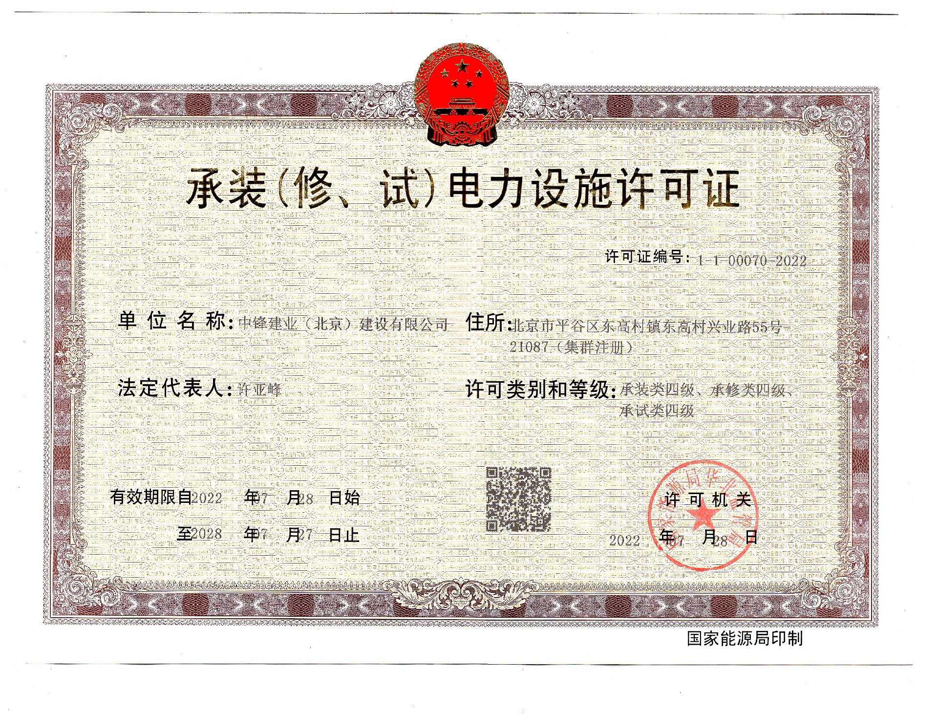 中鋒建業(yè)(北京)建設(shè)有限公司資質(zhì)范圍及等級: