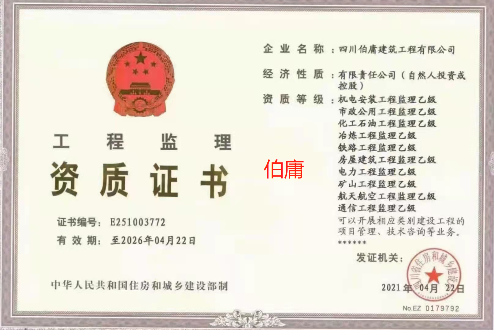 企業名稱:四川伯庸建筑工程有限公司
