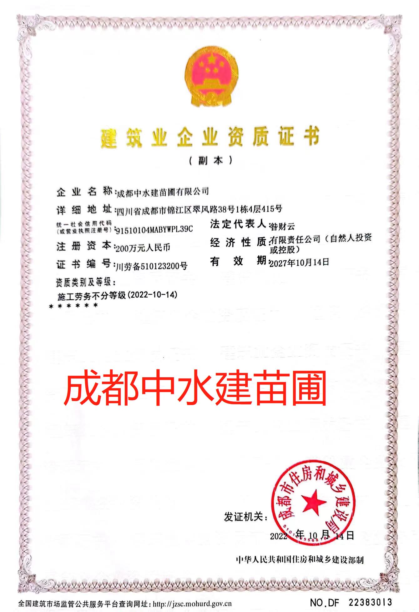 成都中水建安保建設(shè)有限公司資質(zhì)